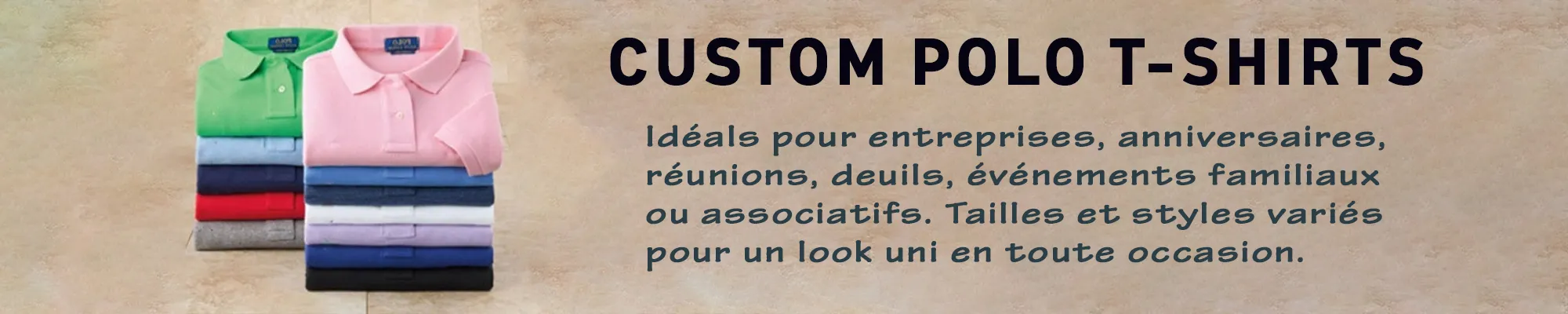 Polos brodés ou polos imprimés avec votre logo, slogan ou design. Coupes homme, femme et unisexe pour convenir à toutes les morphologies. Différentes longueurs de manches et styles pour s’adapter à votre activité et à votre image.